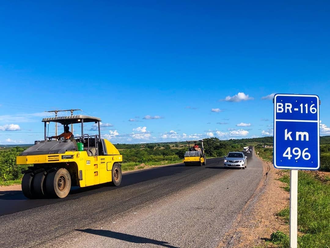 “Começando o dia com essas belas imagens da restauração da BR-116/Ceará, que já alcança o município de Brejo Santo, no sul do estado. Trecho desgastado que passa agora por recuperação total. Compromisso do Governo Jair Messias Bolsonaro com os cearenses sendo cumprido em excelente ritmo. Parabéns à superintendência do DNIT no estado, que também publicou hoje o edital para recuperarmos a BR-122/Ceará entre Quixadá e Banabuiú”, destaca Tarcísio Gomes.