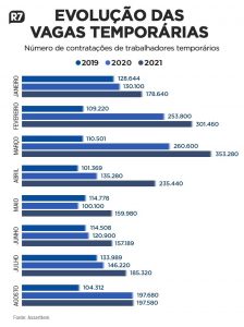 Segundo ele, muitas empresas, como bares, restaurantes e até o comércio de rua, sofreram bastante ao longo da pandemia e não têm caixa para apostar em contratação pela CLT, porque o custo, em caso de demissão, é maior, além de a demissão de temporários não exigir aviso prévio nem adicional de 40% do FGTS. “Então, é uma maneira de voltar às atividades sem se comprometer com custo alto caso a economia não retome mesmo”, avalia.